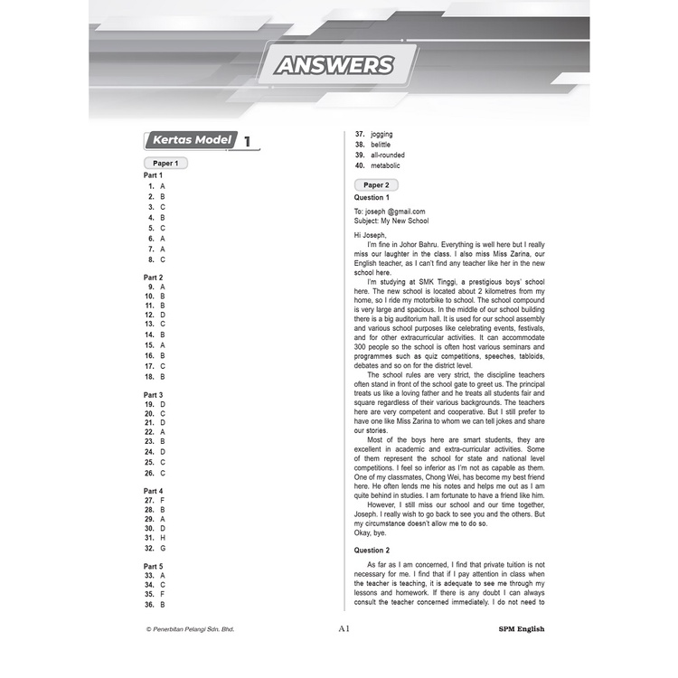 Bahasa Inggeris Kertas 1 / Skor A Kertas Model Spm Bahasa Inggeris